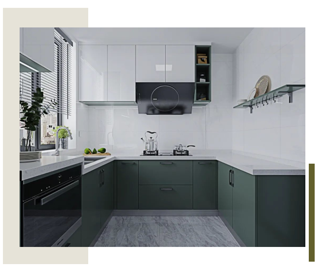 自帶高級的森綠與柔光烤漆相互碰撞,搭配安卡拉白大理石紋,創造輕盈感的同時提高了整潔度,讓人仿佛置身于大自然中,舒心、平靜。